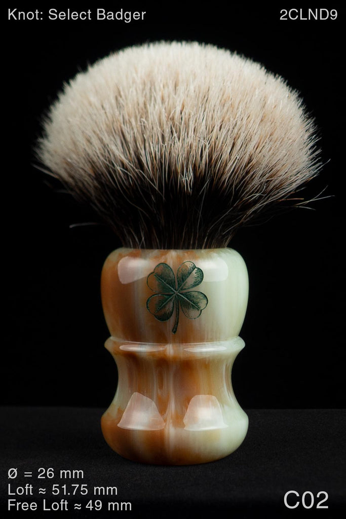 The Paladin™ PK-47™ handle embodies an original design, although it appreciatively reflects traditional influences. The concave section below the ring (or bead) is slightly more open than that of the Chief™, and the PK-47 has just a bit more girth. We were honored by a request to make 100 PK-47s for The Shave Nook’s third anniversary (2015), limited-edition brush. It was enthusiastically received; that offering sold out in 97 seconds. This is a nicely balanced brush. At about mid-size in height, the PK-47 serves bowl and face-lathering equally well, at least in our use.