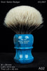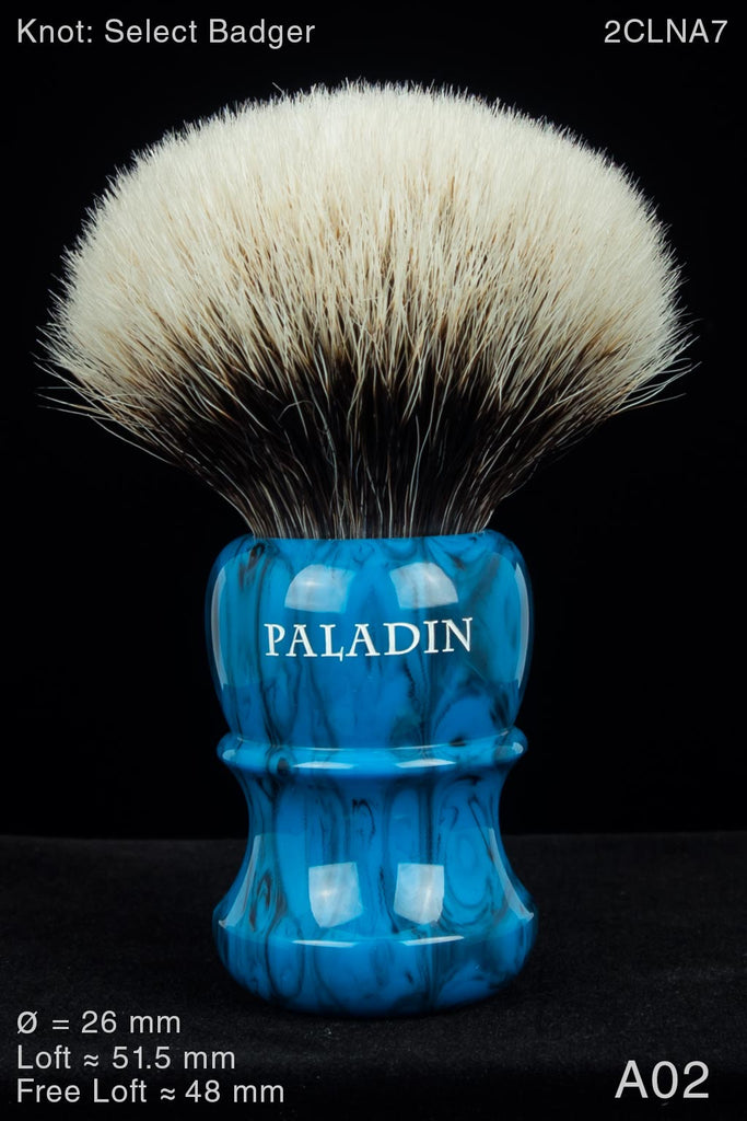 The Paladin™ PK-47™ handle embodies an original design, although it appreciatively reflects traditional influences. The concave section below the ring (or bead) is slightly more open than that of the Chief™, and the PK-47 has just a bit more girth. We were honored by a request to make 100 PK-47s for The Shave Nook’s third anniversary (2015), limited-edition brush. It was enthusiastically received; that offering sold out in 97 seconds. This is a nicely balanced brush. At about mid-size in height, the PK-47 serves bowl and face-lathering equally well, at least in our use.