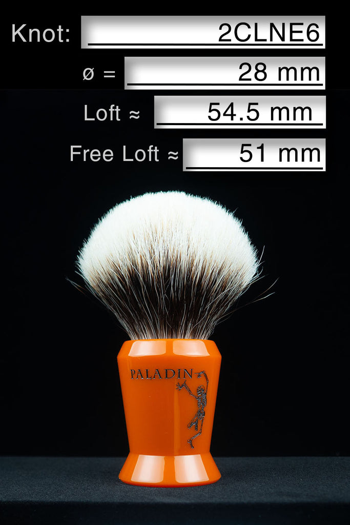 The Paladin™ Atlas™ handle-design is based very closely on a Kent V10 in our collection of vintage shaving brushes. We didn’t undertake to explore modifications for the sake of enhancement; our objective was simply to resurrect an abandoned style that we’ve long admired. The only minor changes we purposely made were to 1) extend the top and bottom sections each by about 0.5 mm in height (i.e., 1.0 mm total) and 2) add a slight chamfer to the bottom edge. Otherwise, the 28 mm Paladin Atlas is basically scaled 1:1 with our example of the V10. The Atlas is probably a little better suited to face lathering than use with a bowl.