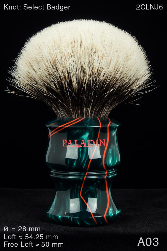 The Paladin Lotus™ handle-design was developed from scratch. It reflects no prior influence (at least not any that we recognize) with the exception of the curve below the double beads, which was adapted from our PK-47™. Fourteen successive prototypes were turned before the final version was selected. The Lotus has the distinction of having been copied (from a pre-release photo posted on The Shave Nook) before we offered any for sale. This brush should work just about equally well for either bowl or face lathering.