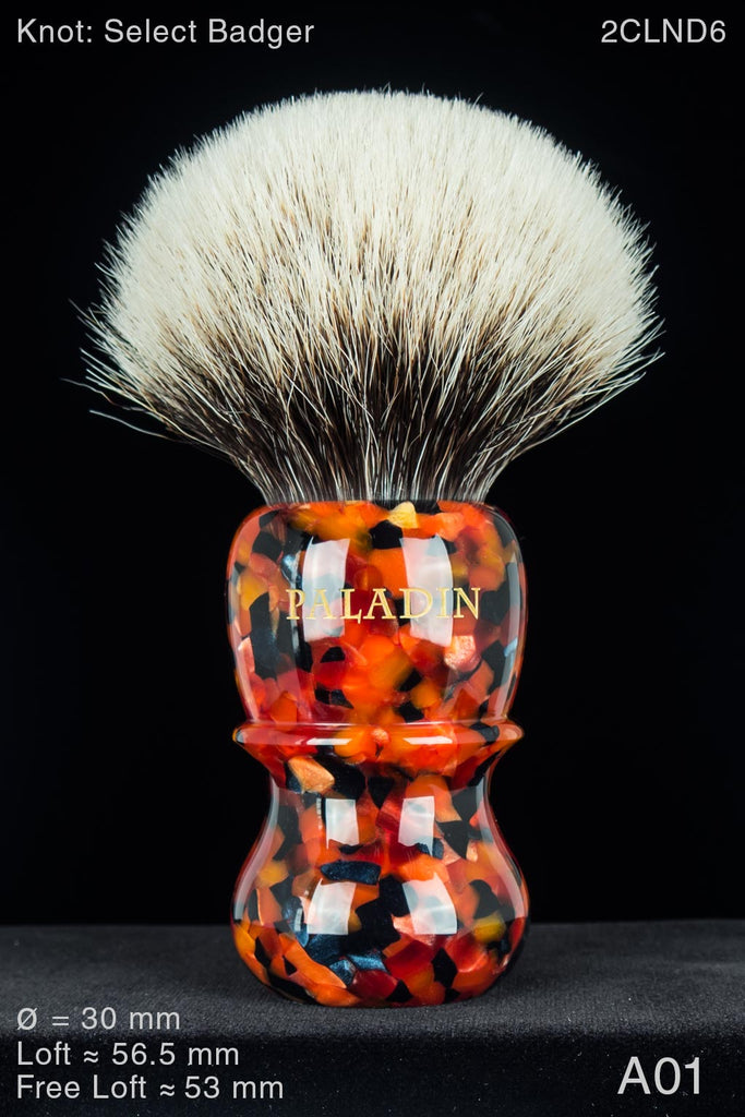The Paladin™ Chief handle-design reflects traditional influences that proximately include the Morris & Forndran L7 and several timeless Simpson models (notably including the venerable M7 and AS3), which themselves have antecedents in US-made Rubberset shaving brushes dating to the early 1900s. The basic shape has been around for a long time (probably because it was easy to produce on primitive lathes, looks good, and works quite well). Our design objectives for the Chief aimed to achieve subtle yet distinctive aesthetic and ergonomic refinements. This brush is especially well-suited to bowl-lathering, but it also works just fine for face-lathering.