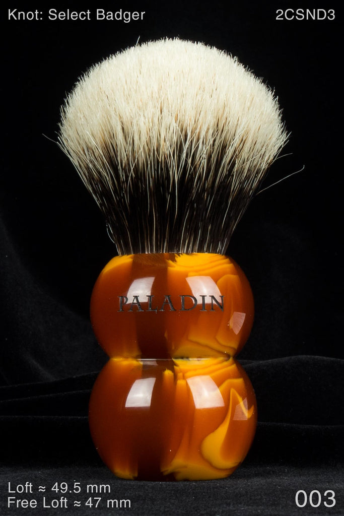 The Paladin™ Sumo™ handle-design was inspired by the Simpson IM3, (produced for I. Magnin, a former San Francisco-based, luxury department store). The IM3 is more commonly known as the Snowman or Bumblebee. That brush turns up in the wild very rarely. We were fortunate to have a good friend and collector in San Francisco give us two examples of the IM3 for study. We love the whimsical design; it’s hard to look at an IM3 or Sumo without smiling. But what surprised us is that the shape is also highly ergonomic. We’re pleased to make it available to wet-shavers again. Most will probably find the Sumo best-suited to face-lathering.