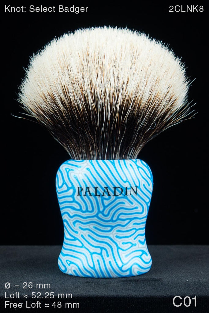 At present, we only offer knots containing what is commonly referred to as 2-band badger hair, the characteristics of which combine resilient (springy) shafts with soft tips. High quality knots of this type are prized for their overall performance. The resilience of 2-band hair confers optimal backbone without excessive density. As a result, 2-band knots typically deliver superior lather production and flow-through without sacrificing comfort in use. We offer these knots first and foremost because they are what we prefer to use ourselves. Please take care to note additional details regarding the various knots installed in listed brushes here.