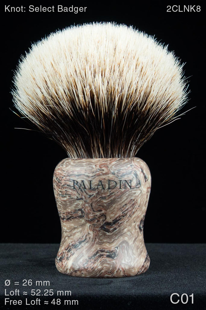 At present, we only offer knots containing what is commonly referred to as 2-band badger hair, the characteristics of which combine resilient (springy) shafts with soft tips. High quality knots of this type are prized for their overall performance. The resilience of 2-band hair confers optimal backbone without excessive density. As a result, 2-band knots typically deliver superior lather production and flow-through without sacrificing comfort in use. We offer these knots first and foremost because they are what we prefer to use ourselves. Please take care to note additional details regarding the various knots installed in listed brushes here.